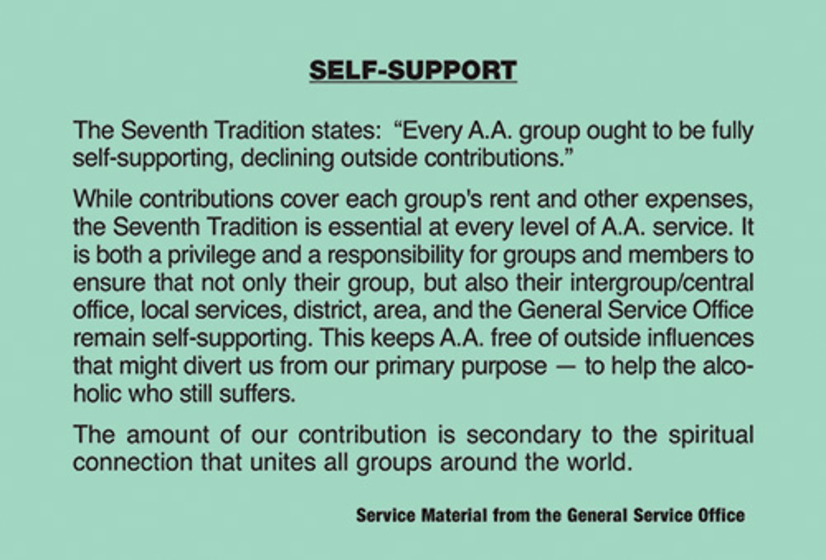 Explains the importance of the Seventh Tradition — that every group is self-supporting through its own contributions — including the spiritual significance of this principle.